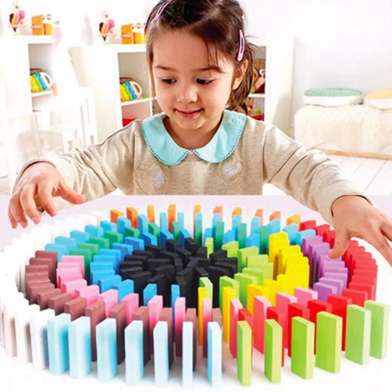 Colors 100 Pieces Children's Building Blocks Entertainment Large Domino Children Early Education Wooden Educational Toys