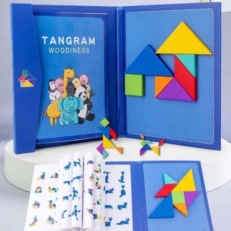 Wooden Jigsaw Magnetic Tangram Puzzle Book Kids Puzzle Early Educational Toy Developing Intelligence Puzzle Board for Children
