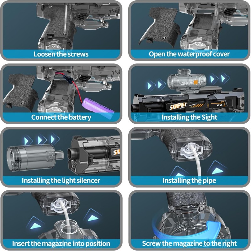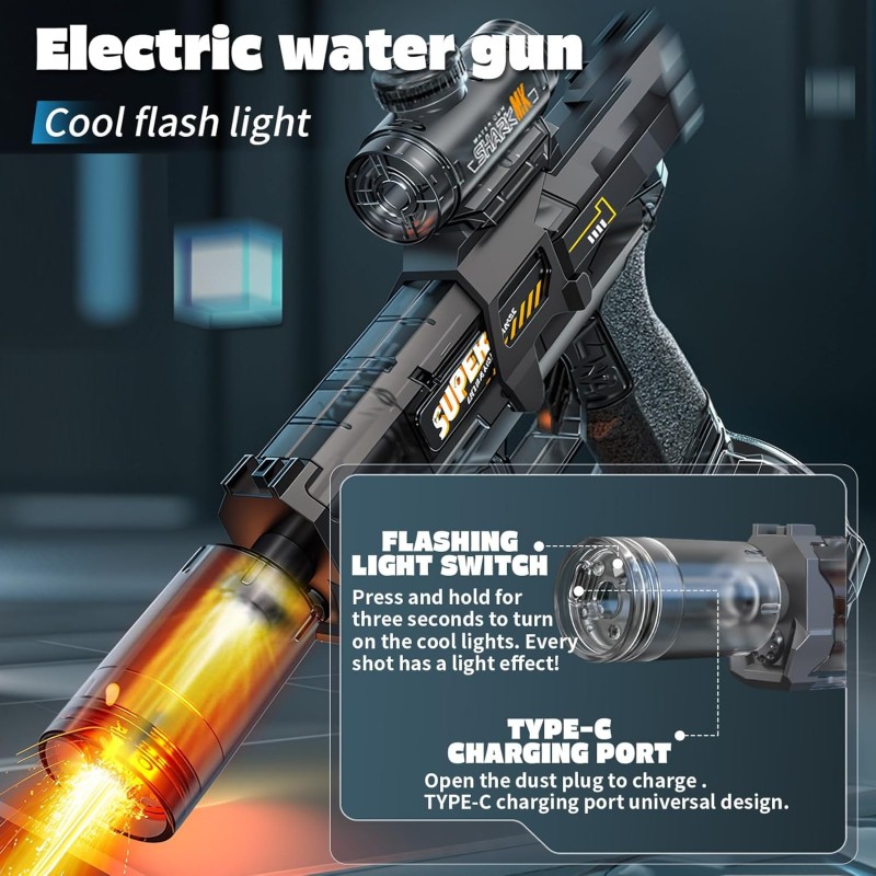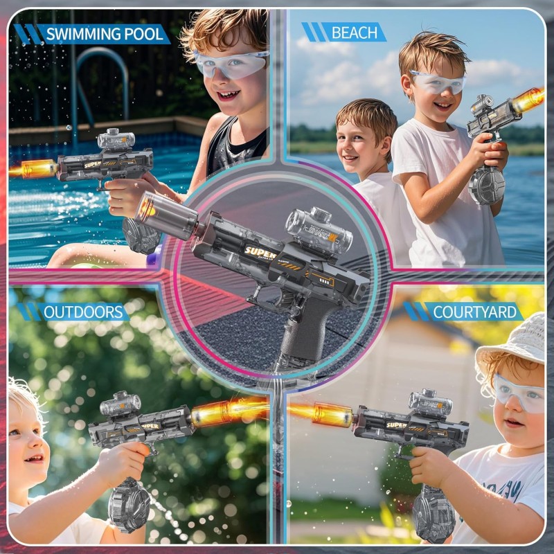 Rechargeable Electric Water Gun with Light Up,28-32 FT, Powerful High Powered Automatic Squirt Gun Fully Auto Water Blaster,Toy Game for Adult &Kids